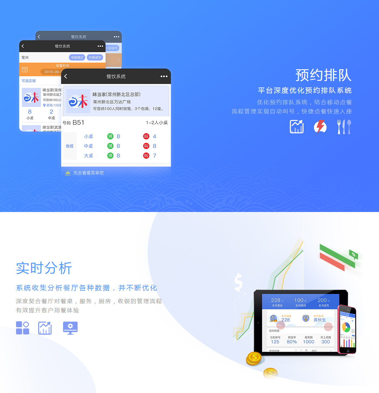 类似于美团、大众点评,具有排队、预约、点餐及点评功能,扫码即可点餐,无需服务员参与,下单自动出票。该模块还支持单店版和多店版,随着“附近的小程序”功能的推出,小程序成为餐饮行业重要的客户流量渠道。