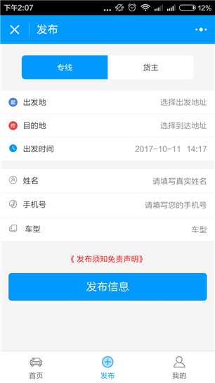 拼车模块分车找人和人找车两种模式,进入小程序后用户只需要输入自己的具体位置和目的地,将信息进行提交后,小程序会将发布信息上传至平台,寻找相匹配的私家车或者乘客。