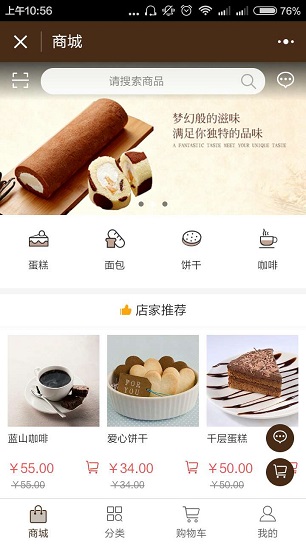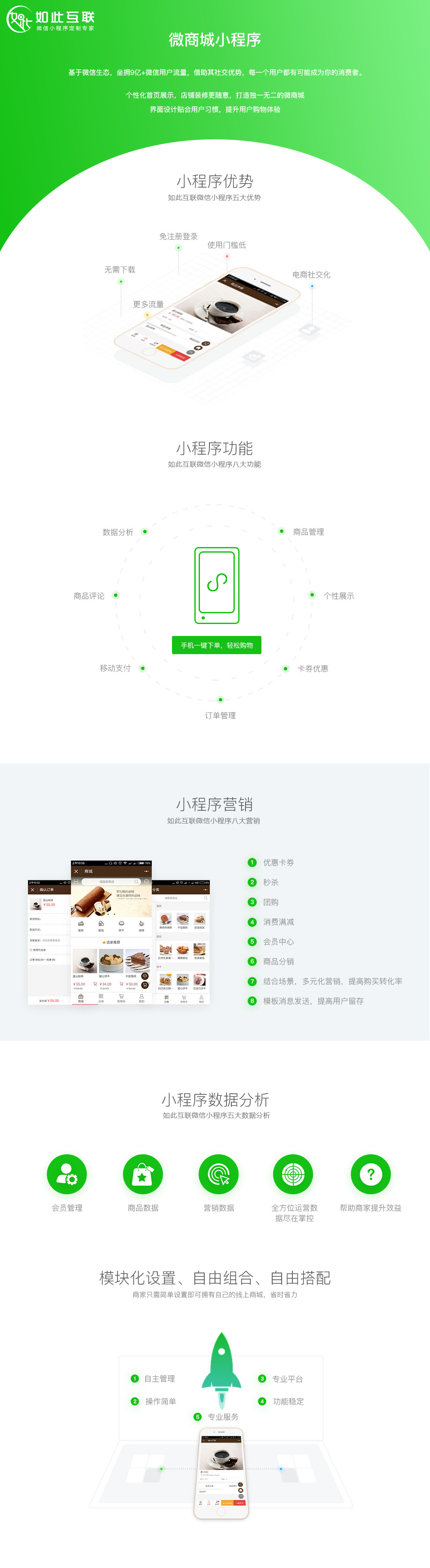 小程序中的移动商城,在线下单,在线支付,独立后台,推广更简单,管理更便捷。